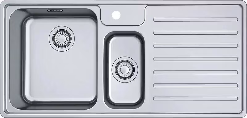 Franke Bell BCX 251 diskho i rostfritt stål inklusive ventilset och vattenlås. För topmontage, planlimmad och undermontage.