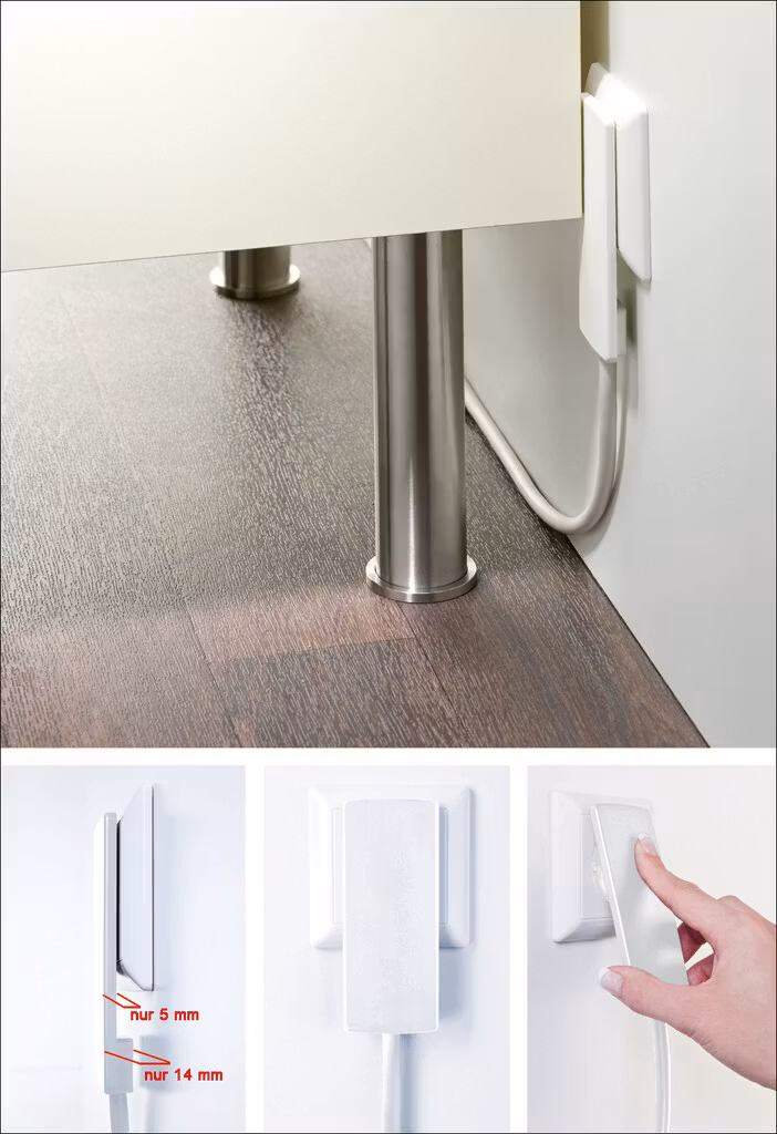En platt jordad stickpropp med rörligt huvud som gör att man kan drag ur stickproppen utan ansträngning. EVOline Plug är en helt ny produktdesign som kännetecknas av endast 5mm bygghöjd. Gör så att man kan sätta möblerna tätt mot väggen trots stickproppen.
