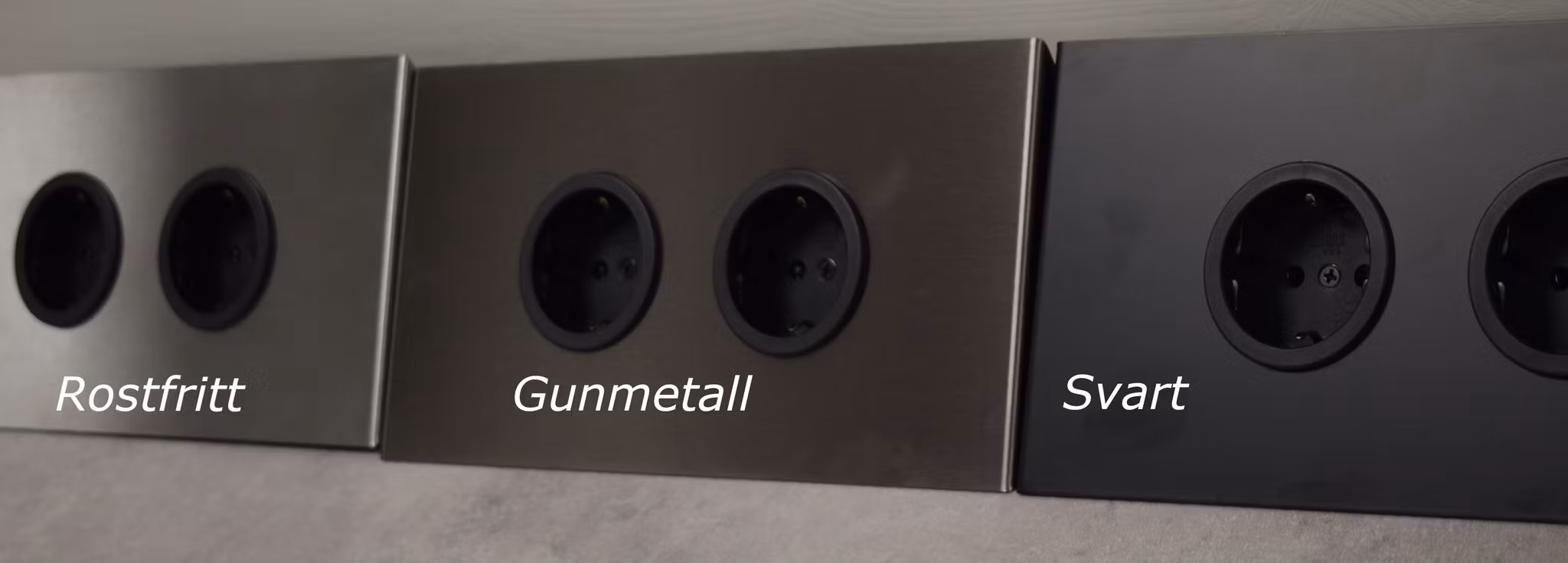 För fritt montering under väggskåp rekommenderar vi hörnboxar Bella som har två kortsidor som är helt i svart lackerat rostfritt stål.