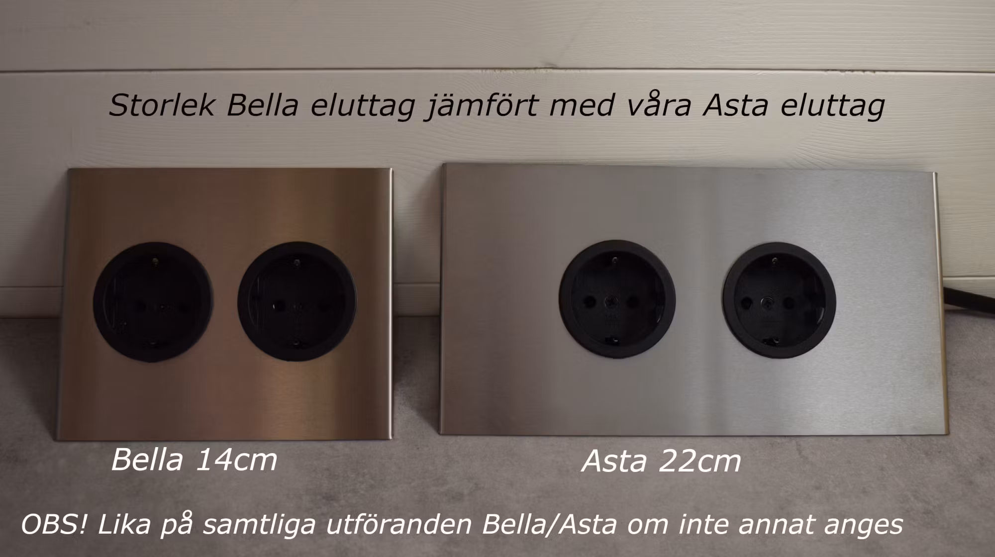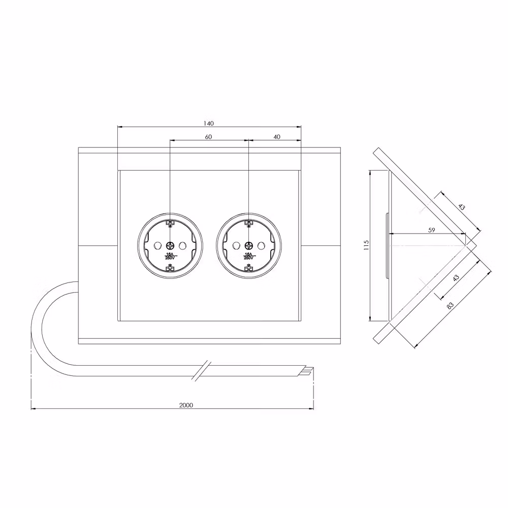 Hörnbox Bella är ett modernt vinklat eluttag i rostfritt stål (färg koppar) med 2 jordade eluttag för liggande, för montering under överskåp eller hyllplan.