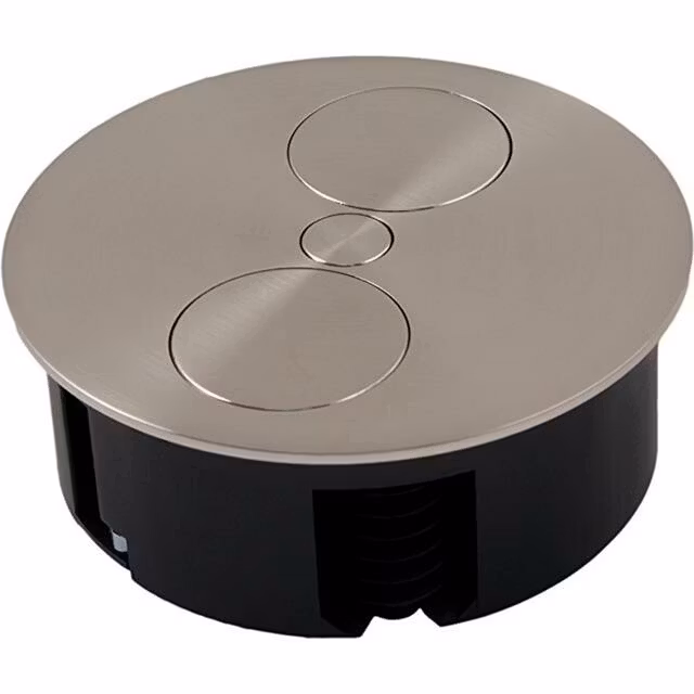 Bachmann Twist infälld uttag i elegant rund form. Det dubbla uttaget är utrustat med ett vridbart lock för att komma åt de två jordade uttagen. Av säkerhetsskäl har ökat skydd mot oavsiktlig beröring integrerats. Tack vare det låga installationsdjupet kan det dubbla uttaget enkelt placeras ovanför lådor i köksskåpet. Höljet är tillverkat av plast, locket av förnicklad zink med borstat rostfritt stål beläggning. Uttaget levereras med inkopplad anslutningskabel och stickpropp.