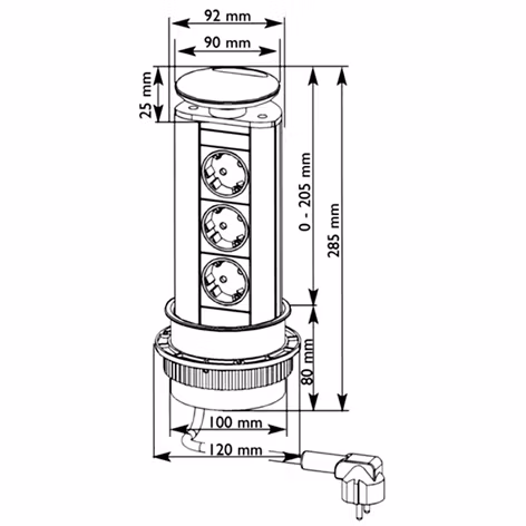 EVOline powerport med 3 jordade uttag.