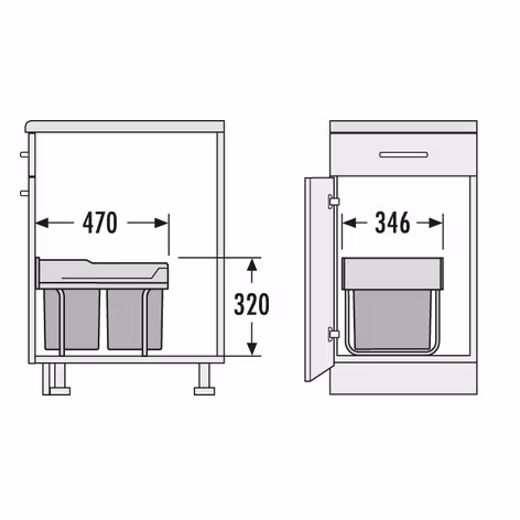 med 2 behållare för ekologiskt separerad avfallshantering,