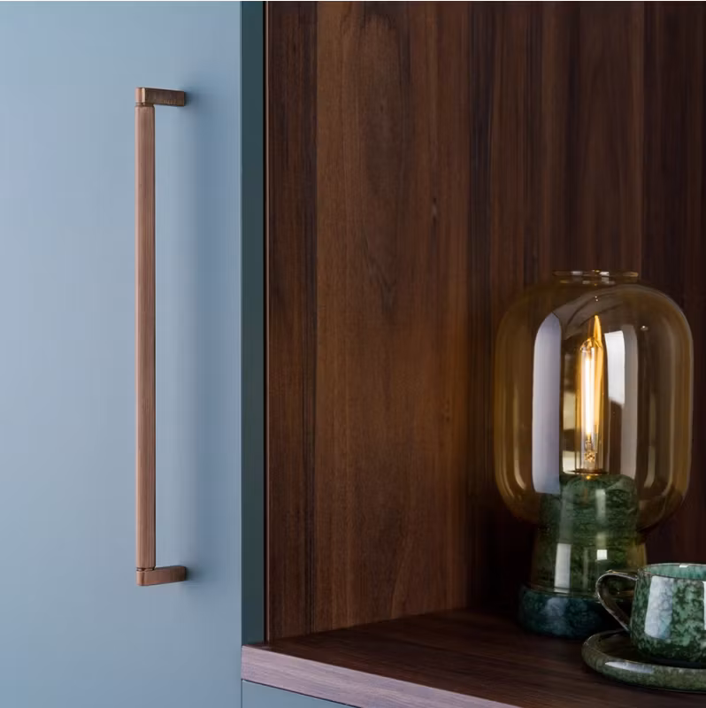 Handtag Brooklyn i borstad brons utmärker sig med sin räfflade textur, som inte bara förhöjer det estetiska intrycket utan också ger en behaglig känsla vid beröring. Med sin karaktäristiska industriella design tillför Brooklyn en unik identitet till rummet.